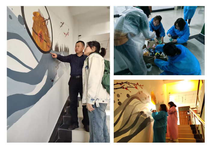 为营造优美、舒适的办公环境,学院将学生专业实践与志愿服务相结合,在本学期初开展了墙体美化活动,在师生的共同努力下,学院墙体美化已初现成效,学院整体面貌焕然一新,充满生机活力。